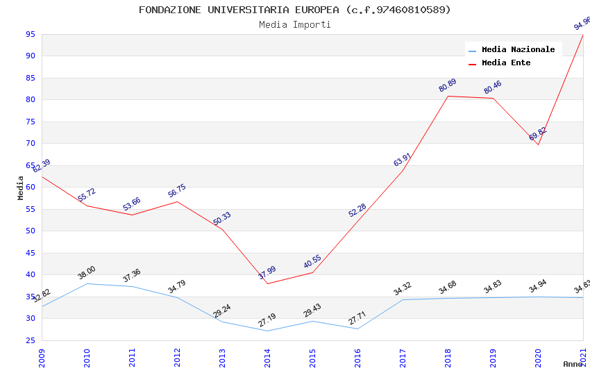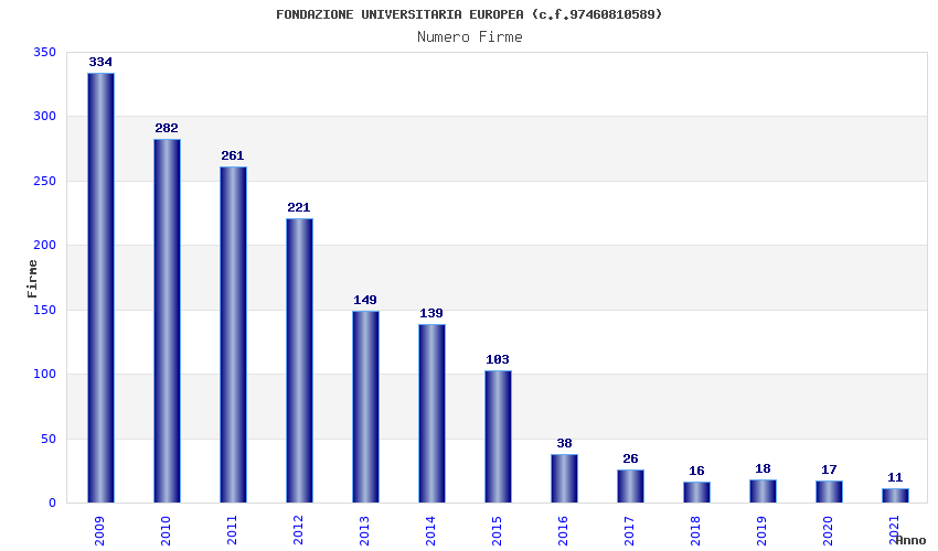 | Anno | Firme | Importi | Media | Naz. | Reg. | Prov. | Comu. |