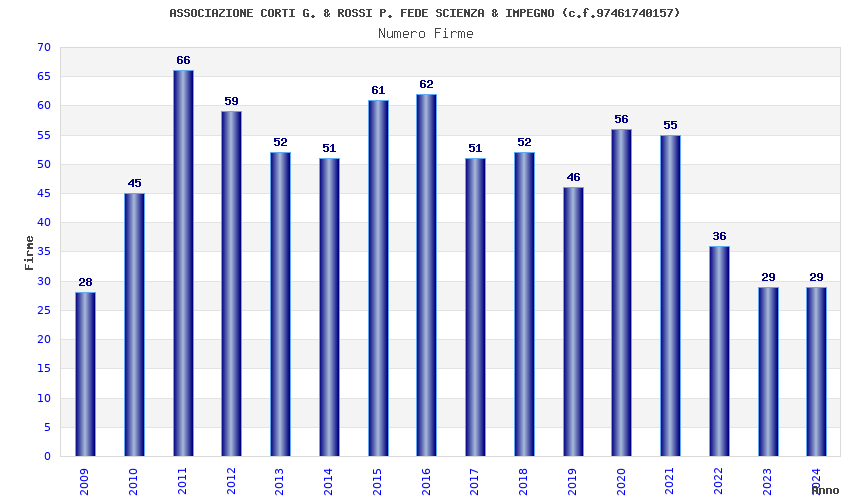 | Anno | Firme | Importi | Media | Naz. | Reg. | Prov. | Comu. |