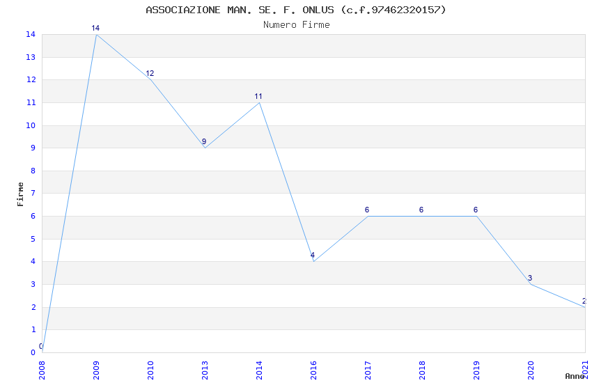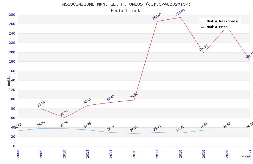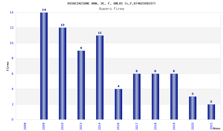 | Anno | Firme | Importi | Media | Naz. | Reg. | Prov. | Comu. |