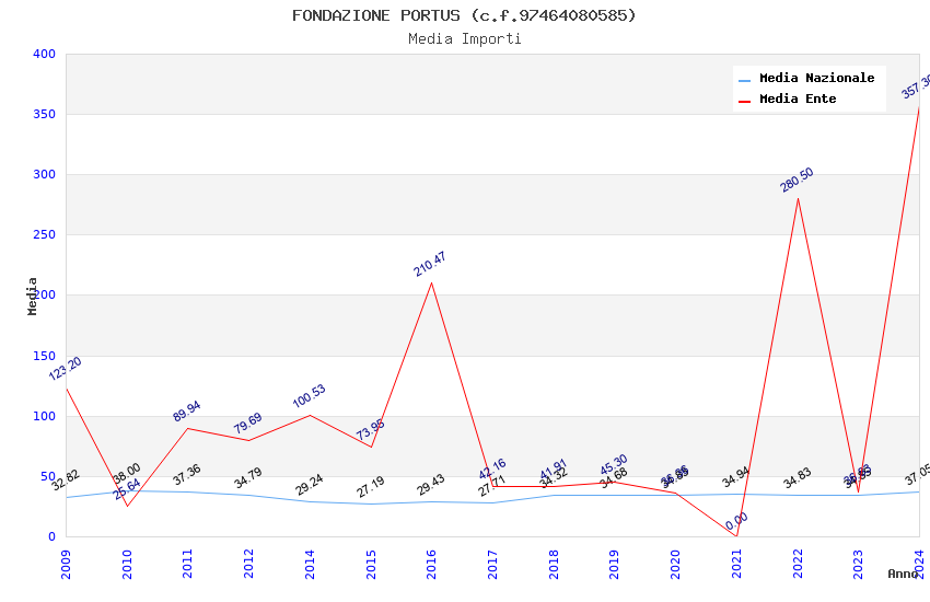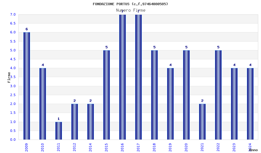 | Anno | Firme | Importi | Media | Naz. | Reg. | Prov. | Comu. |