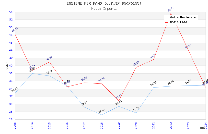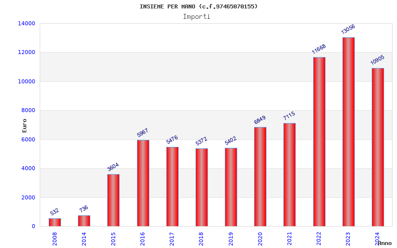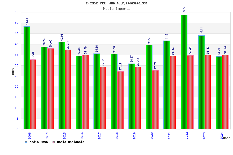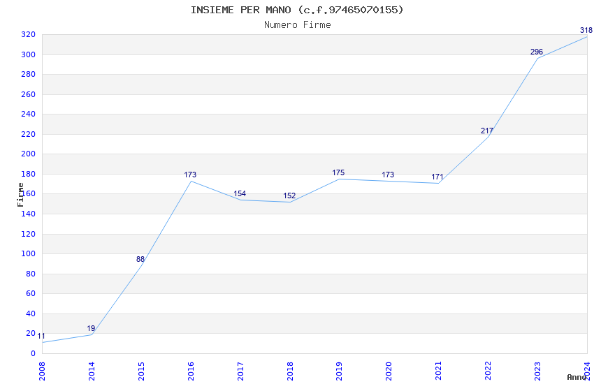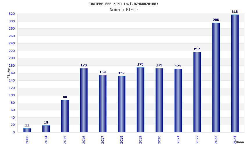| Anno | Firme | Importi | Media | Naz. | Reg. | Prov. | Comu. |