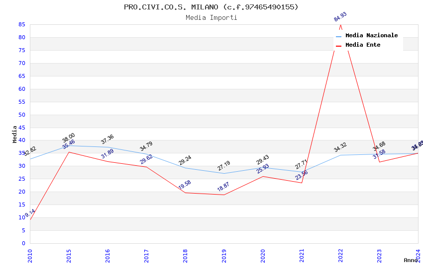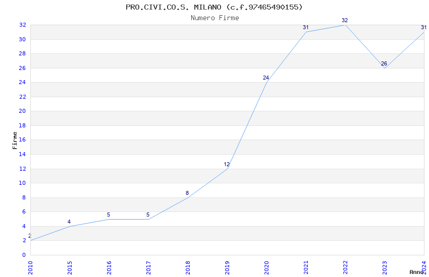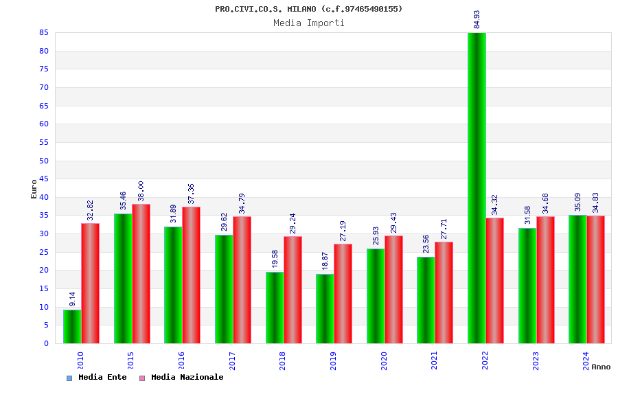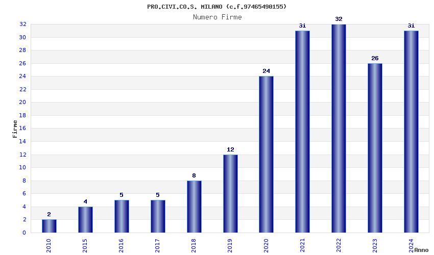 | Anno | Firme | Importi | Media | Naz. | Reg. | Prov. | Comu. |