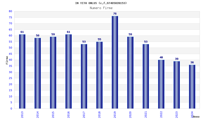 | Anno | Firme | Importi | Media | Naz. | Reg. | Prov. | Comu. |