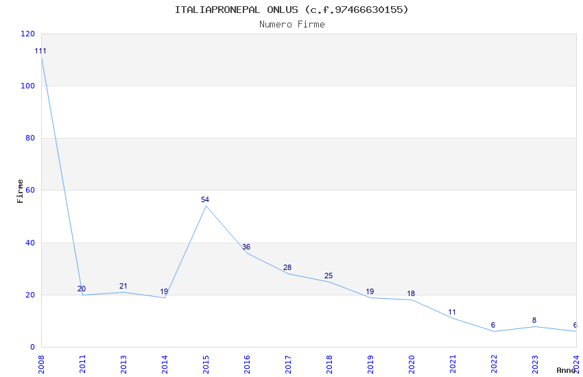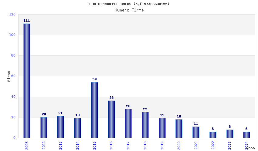 | Anno | Firme | Importi | Media | Naz. | Reg. | Prov. | Comu. |