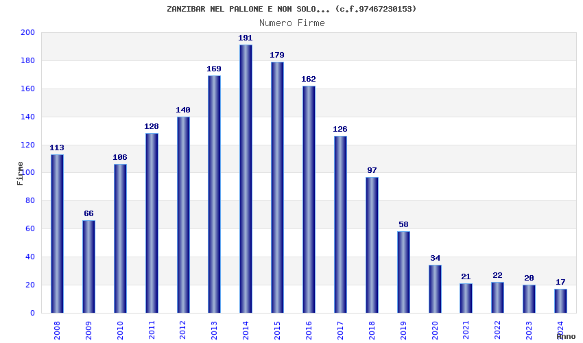 | Anno | Firme | Importi | Media | Naz. | Reg. | Prov. | Comu. |