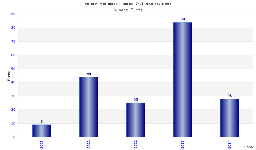 | Anno | Firme | Importi | Media | Naz. | Reg. | Prov. | Comu. |