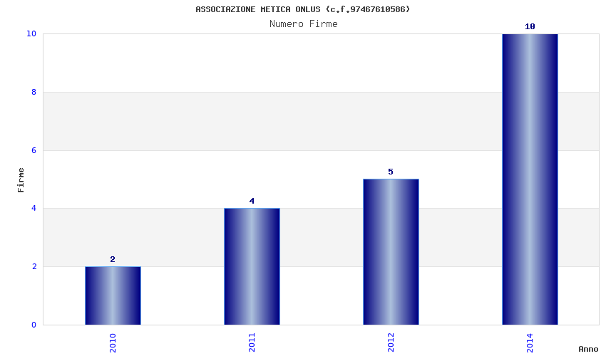 | Anno | Firme | Importi | Media | Naz. | Reg. | Prov. | Comu. |