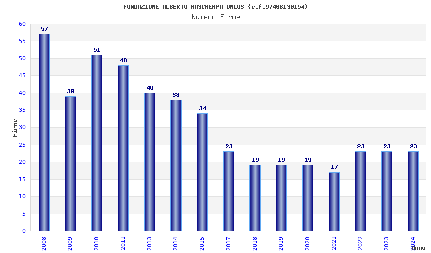| Anno | Firme | Importi | Media | Naz. | Reg. | Prov. | Comu. |