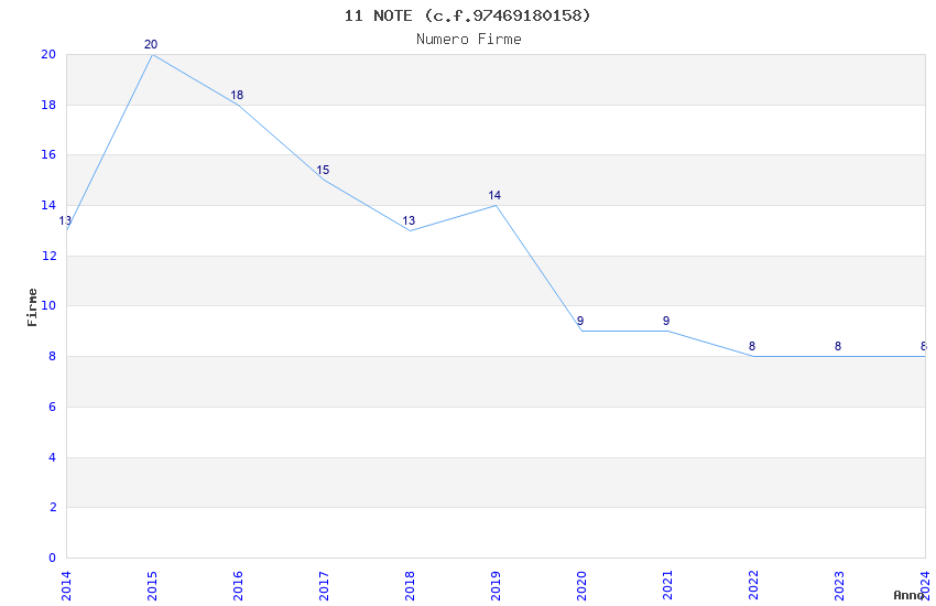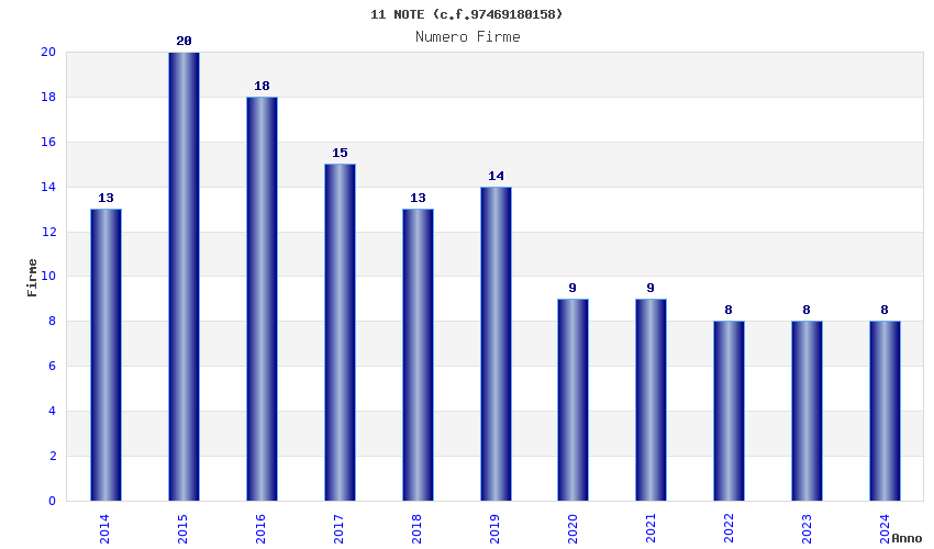 | Anno | Firme | Importi | Media | Naz. | Reg. | Prov. | Comu. |
