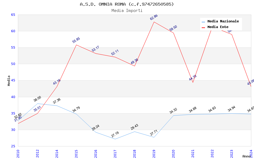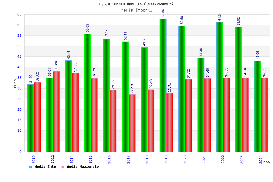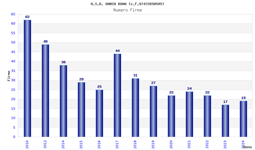 | Anno | Firme | Importi | Media | Naz. | Reg. | Prov. | Comu. |