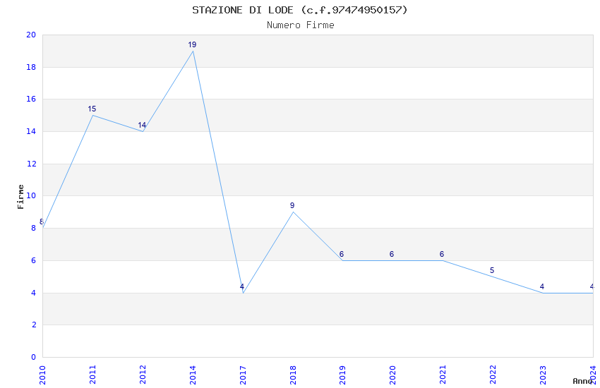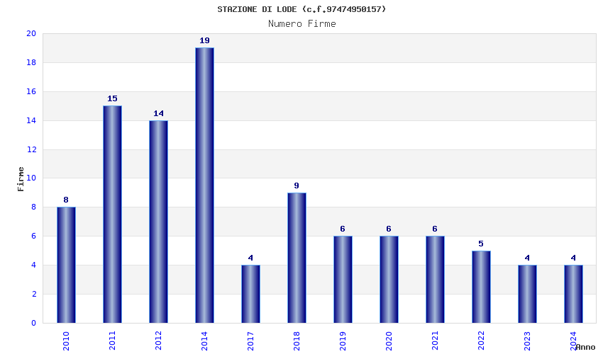 | Anno | Firme | Importi | Media | Naz. | Reg. | Prov. | Comu. |