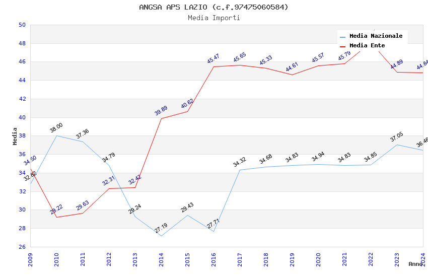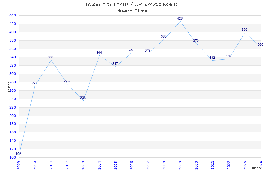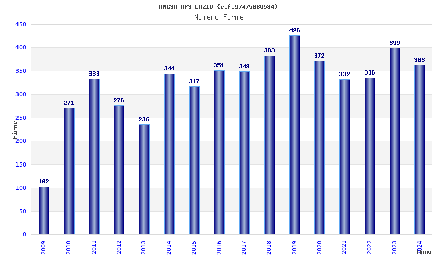 | Anno | Firme | Importi | Media | Naz. | Reg. | Prov. | Comu. |