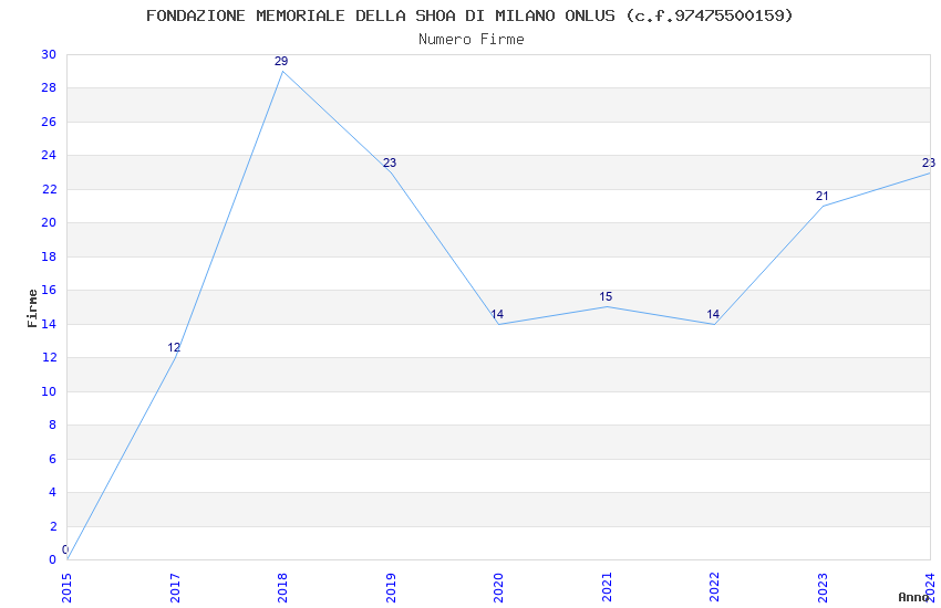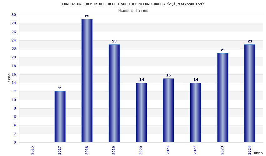 | Anno | Firme | Importi | Media | Naz. | Reg. | Prov. | Comu. |