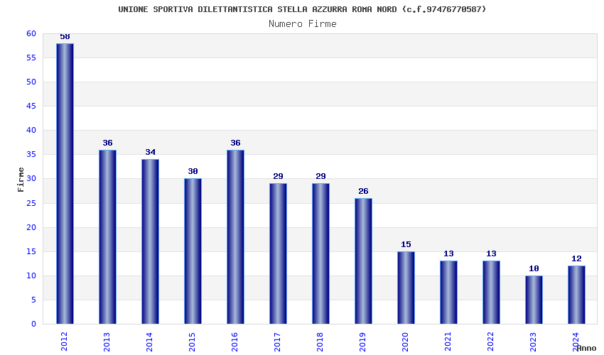 | Anno | Firme | Importi | Media | Naz. | Reg. | Prov. | Comu. |