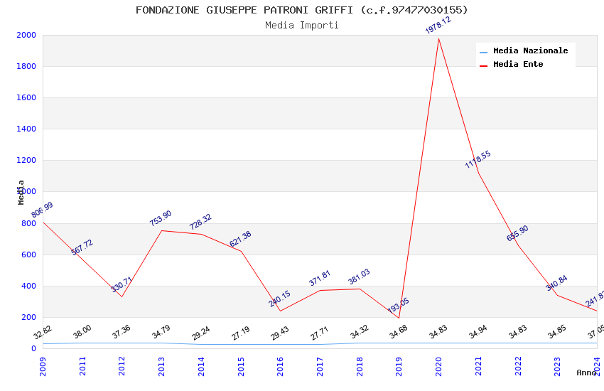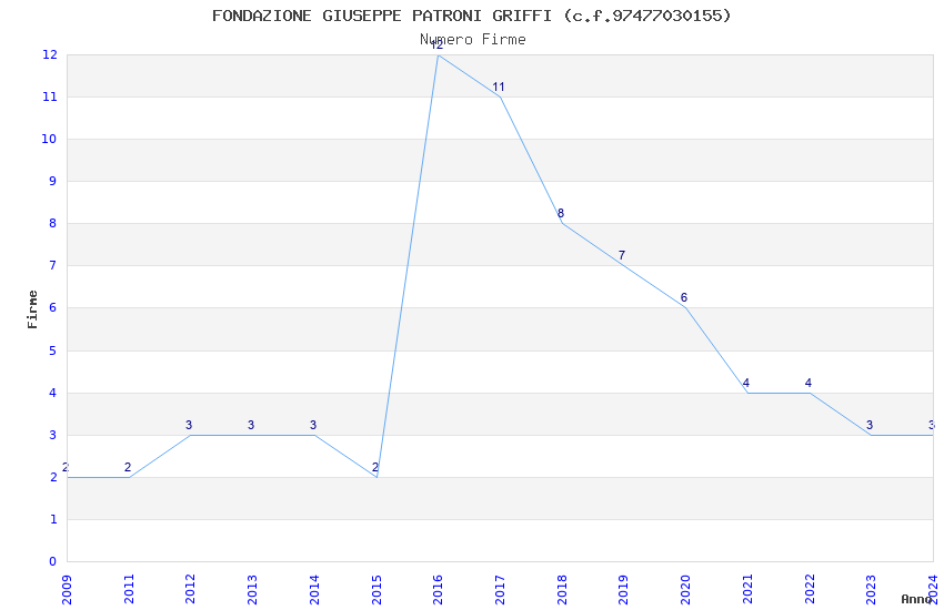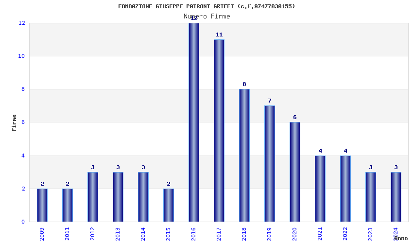 | Anno | Firme | Importi | Media | Naz. | Reg. | Prov. | Comu. |