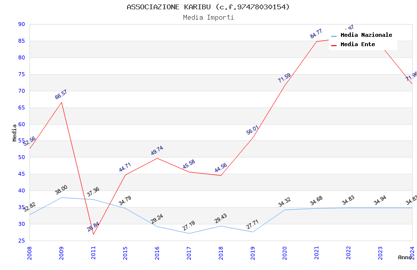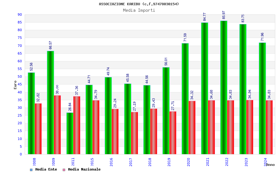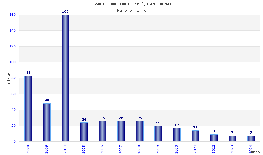 | Anno | Firme | Importi | Media | Naz. | Reg. | Prov. | Comu. |