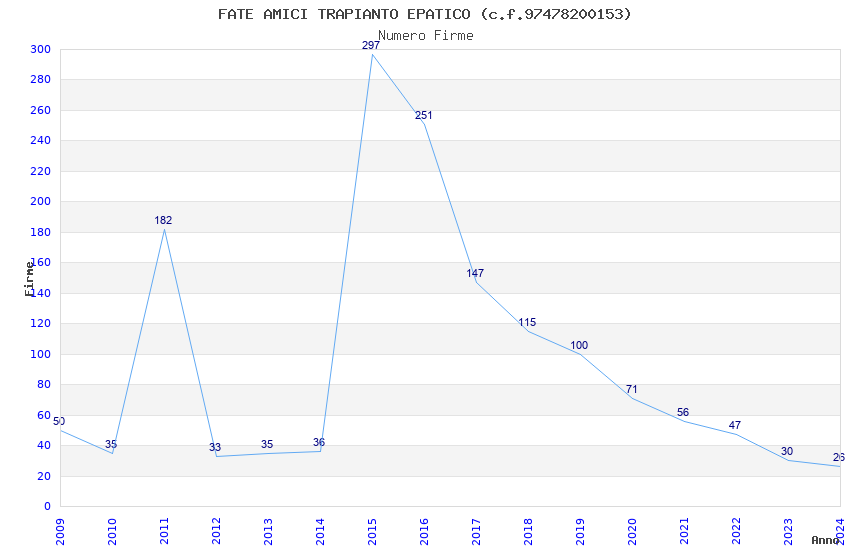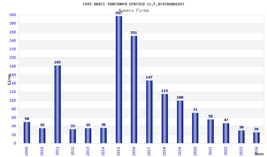 | Anno | Firme | Importi | Media | Naz. | Reg. | Prov. | Comu. |