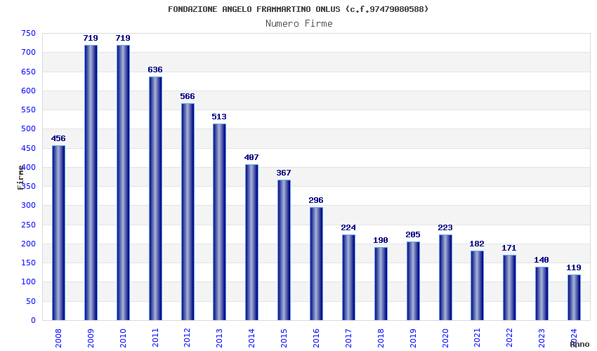 | Anno | Firme | Importi | Media | Naz. | Reg. | Prov. | Comu. |