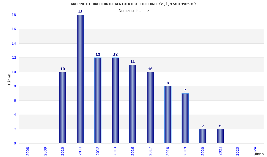 | Anno | Firme | Importi | Media | Naz. | Reg. | Prov. | Comu. |