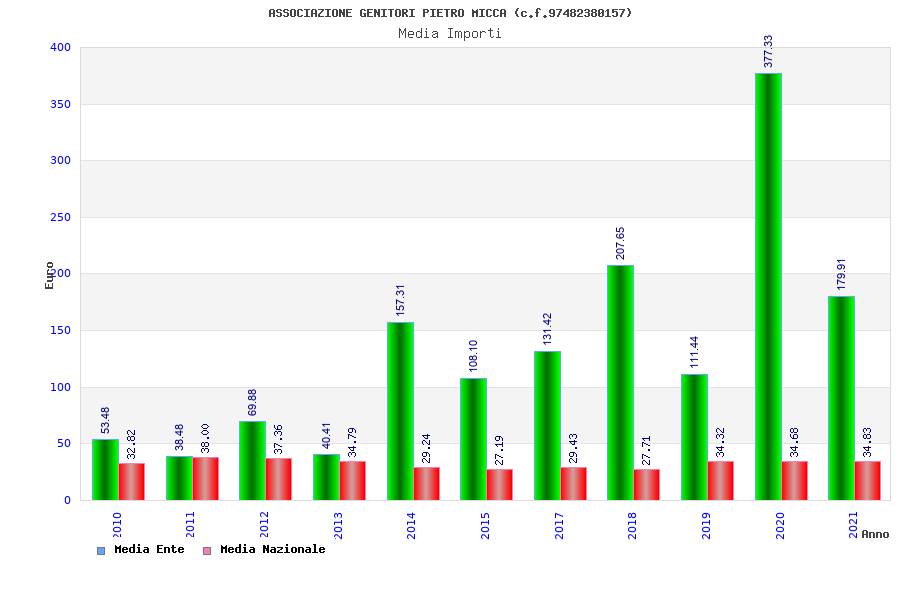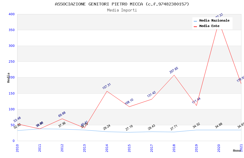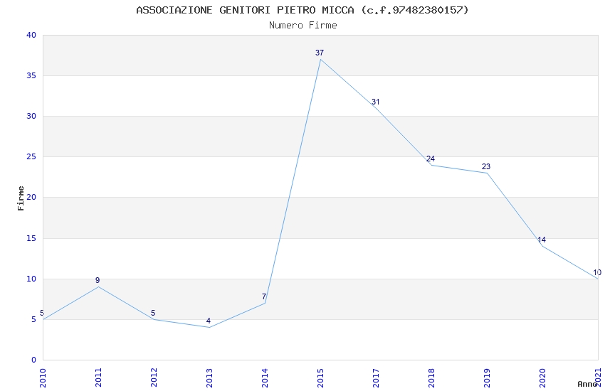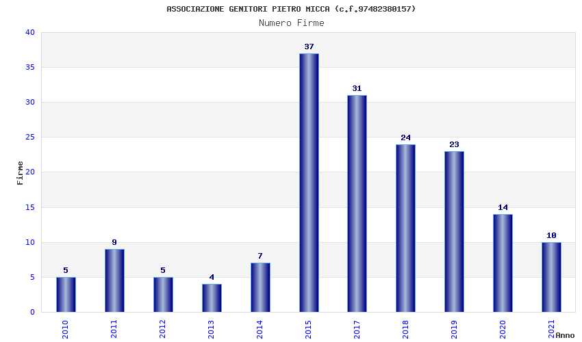 | Anno | Firme | Importi | Media | Naz. | Reg. | Prov. | Comu. |