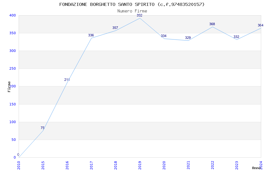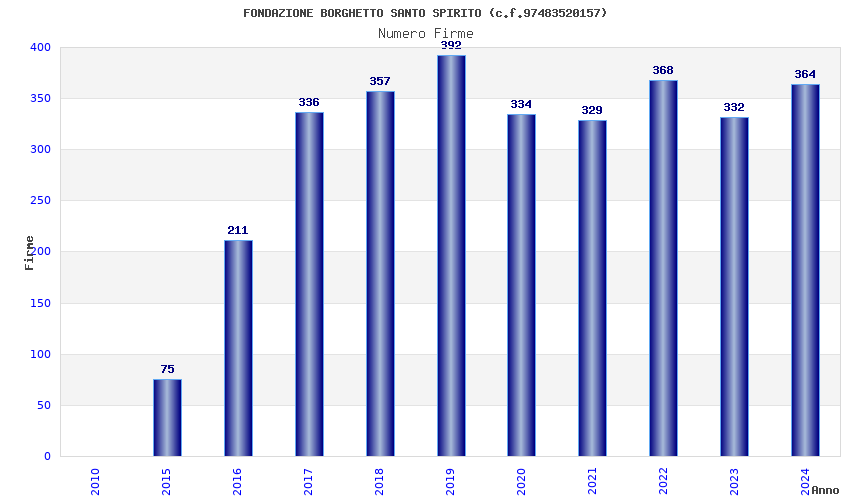 | Anno | Firme | Importi | Media | Naz. | Reg. | Prov. | Comu. |