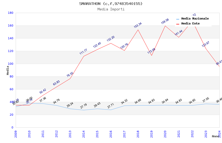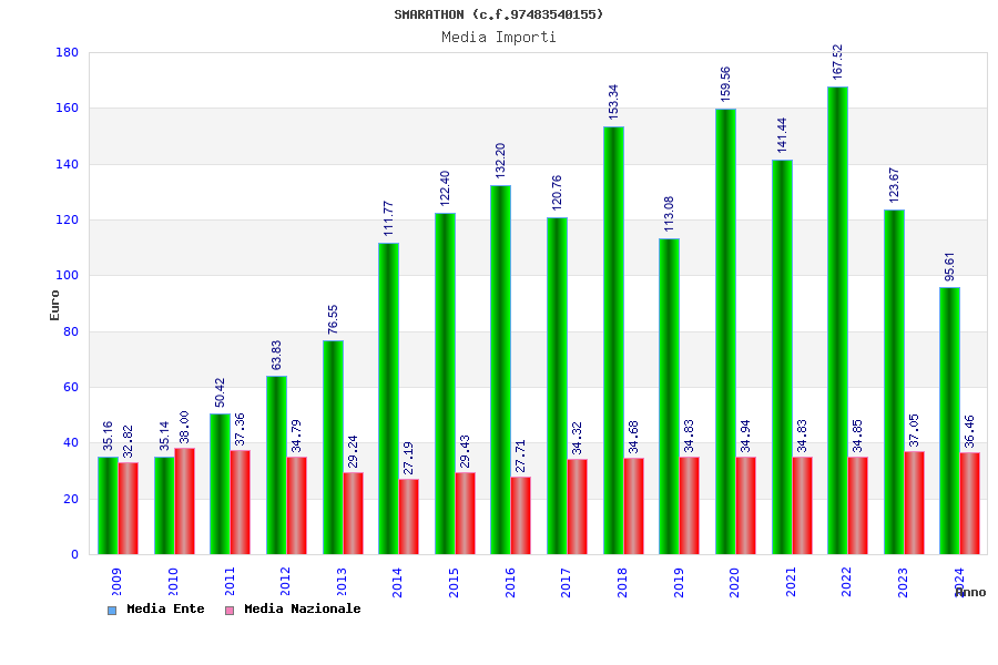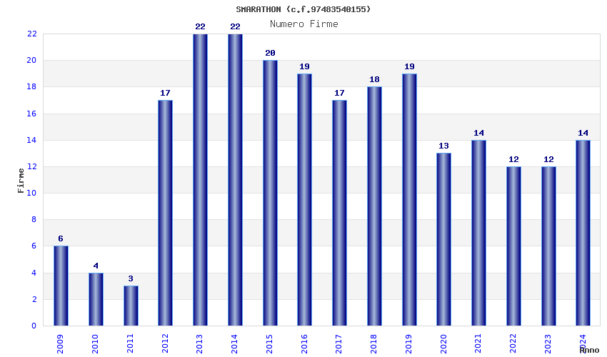| Anno | Firme | Importi | Media | Naz. | Reg. | Prov. | Comu. |