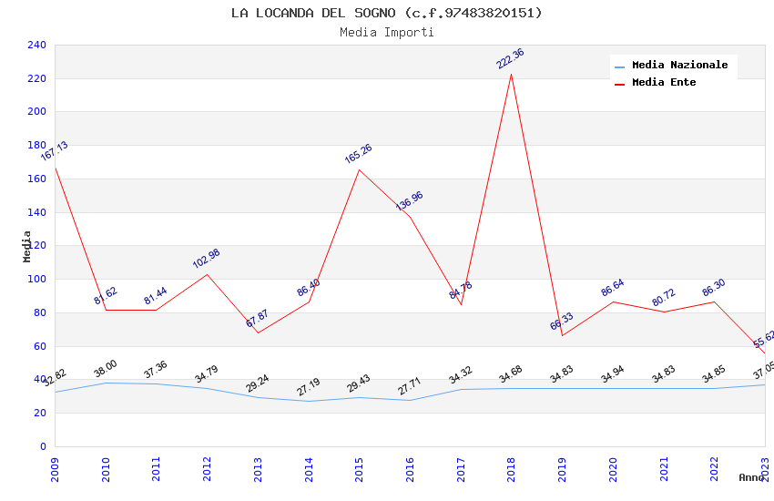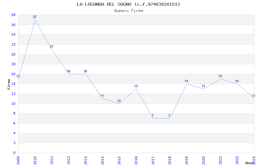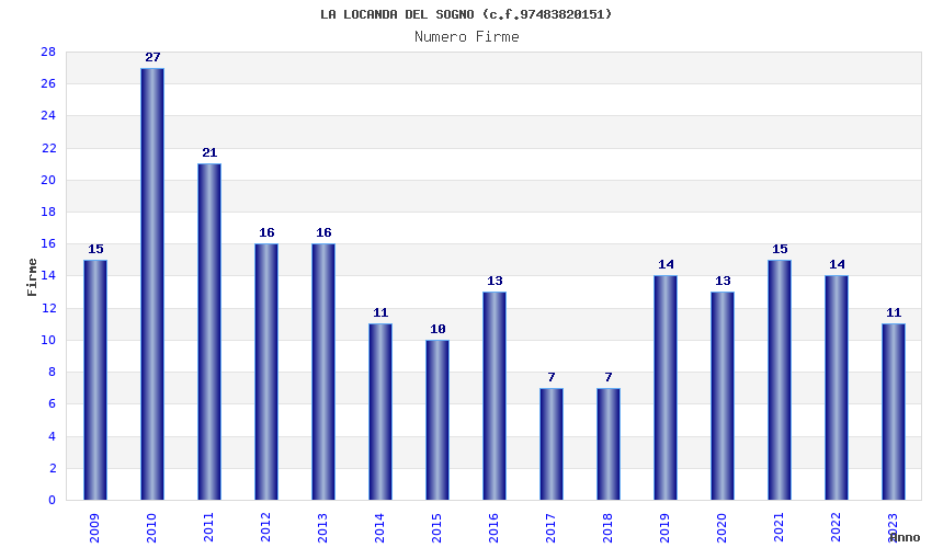 | Anno | Firme | Importi | Media | Naz. | Reg. | Prov. | Comu. |