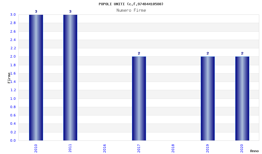 | Anno | Firme | Importi | Media | Naz. | Reg. | Prov. | Comu. |