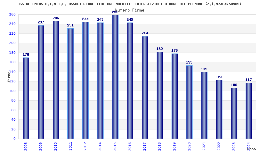 | Anno | Firme | Importi | Media | Naz. | Reg. | Prov. | Comu. |