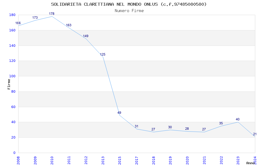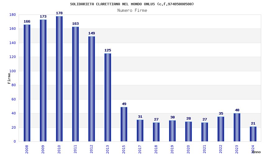 | Anno | Firme | Importi | Media | Naz. | Reg. | Prov. | Comu. |