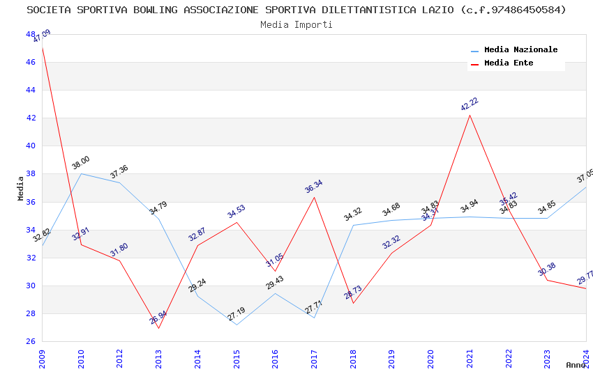 | Anno | Firme | Importi | Media | Naz. | Reg. | Prov. | Comu. |