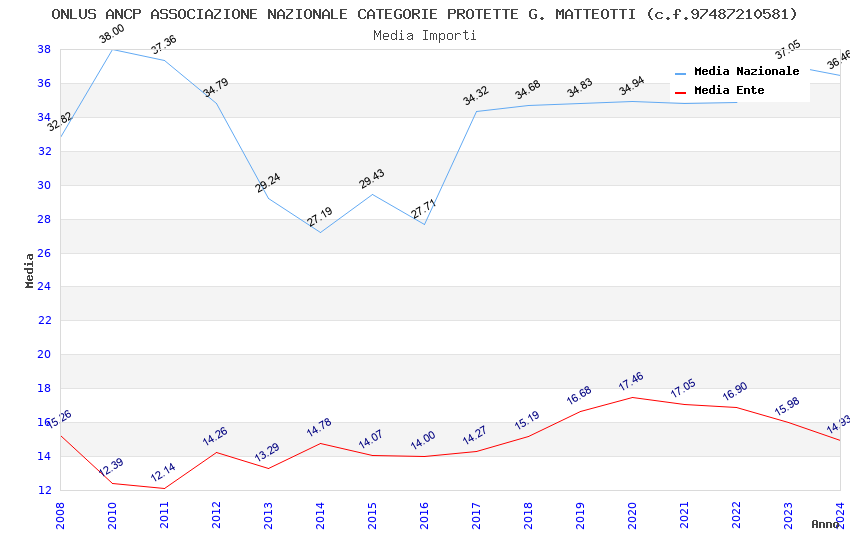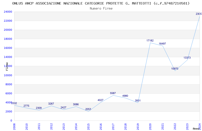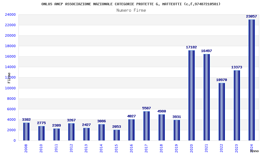 | Anno | Firme | Importi | Media | Naz. | Reg. | Prov. | Comu. |