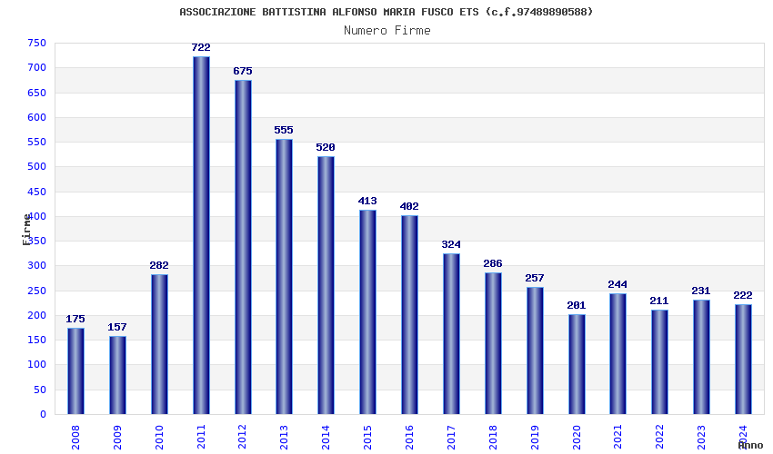 | Anno | Firme | Importi | Media | Naz. | Reg. | Prov. | Comu. |