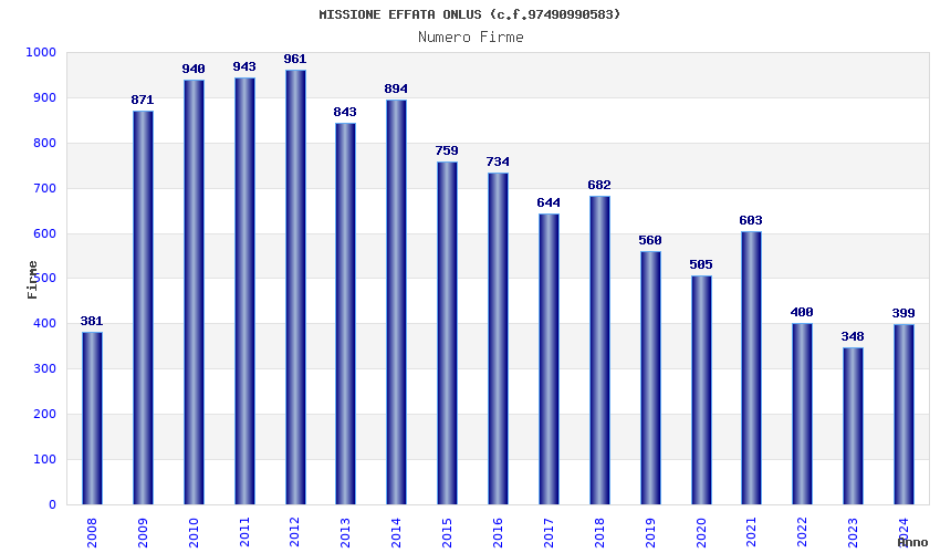 | Anno | Firme | Importi | Media | Naz. | Reg. | Prov. | Comu. |