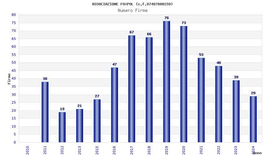 Anno Firme Importi Media Naz. Reg. Prov. Comu.