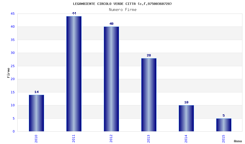 | Anno | Firme | Importi | Media | Naz. | Reg. | Prov. | Comu. |