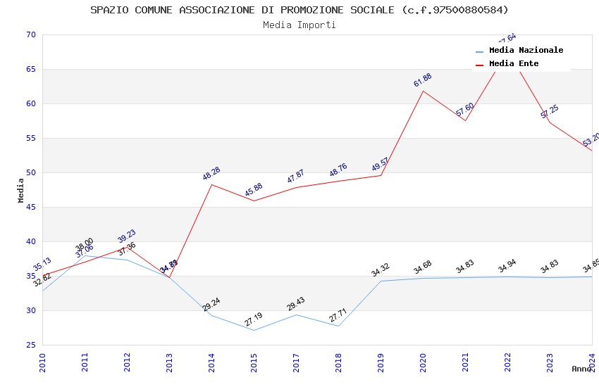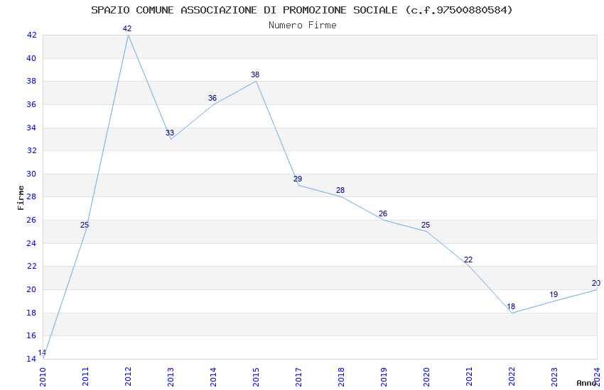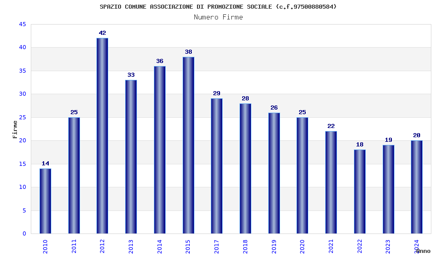 | Anno | Firme | Importi | Media | Naz. | Reg. | Prov. | Comu. |