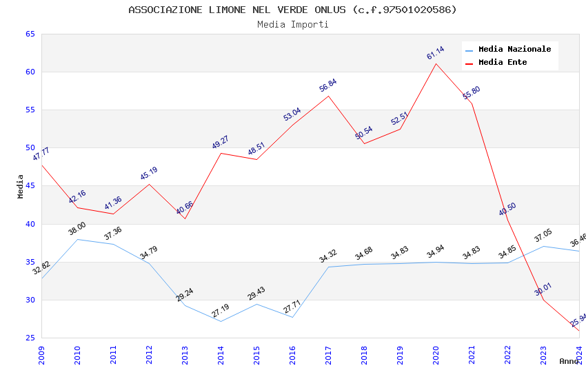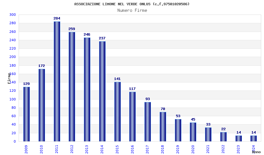| Anno | Firme | Importi | Media | Naz. | Reg. | Prov. | Comu. |