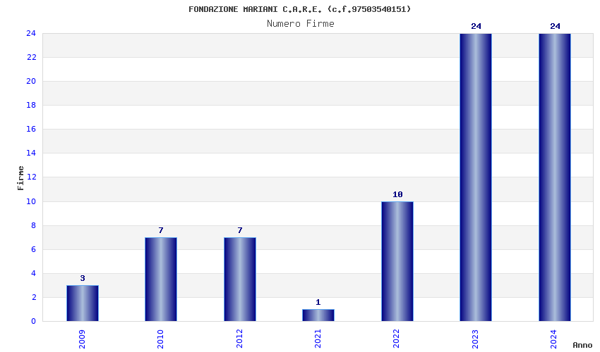 | Anno | Firme | Importi | Media | Naz. | Reg. | Prov. | Comu. |