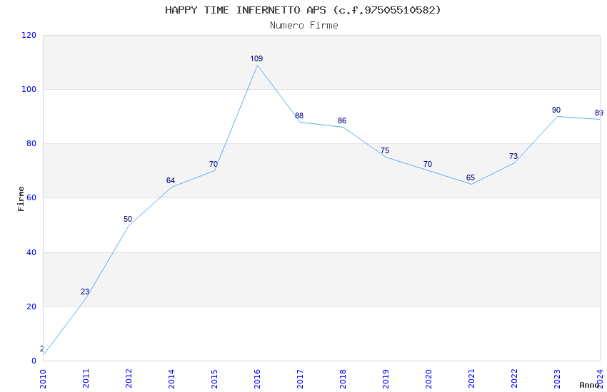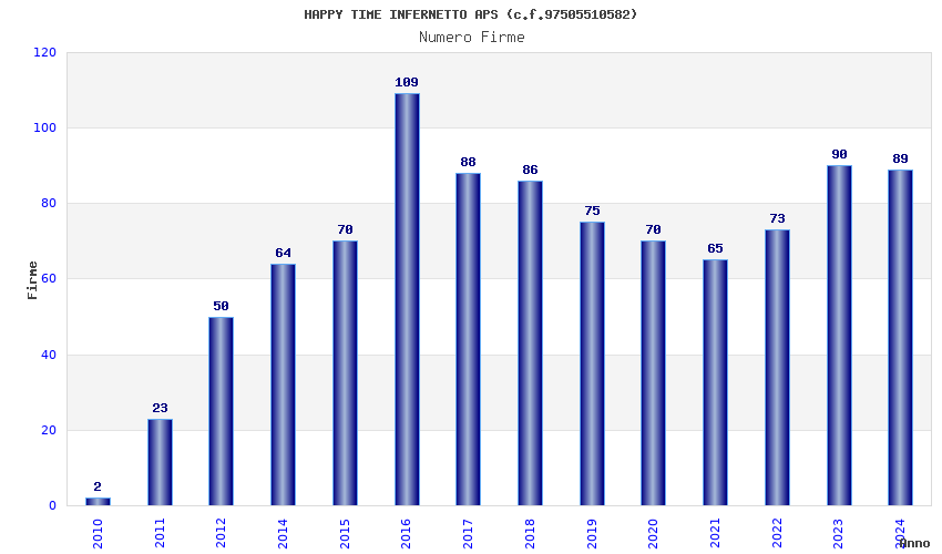 | Anno | Firme | Importi | Media | Naz. | Reg. | Prov. | Comu. |