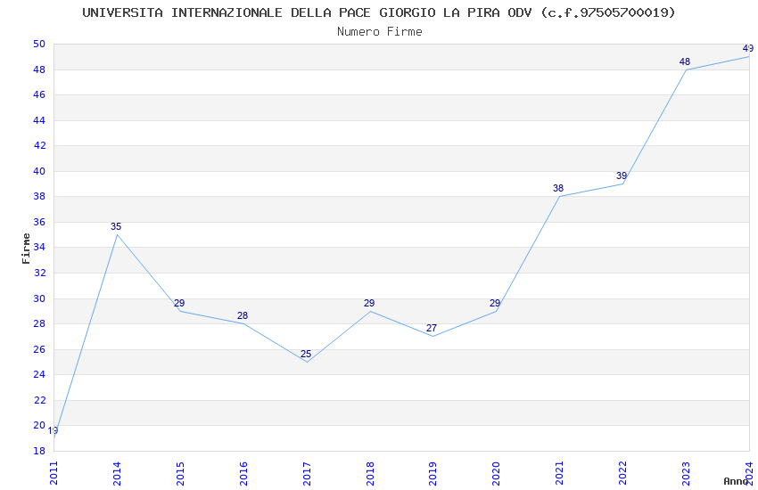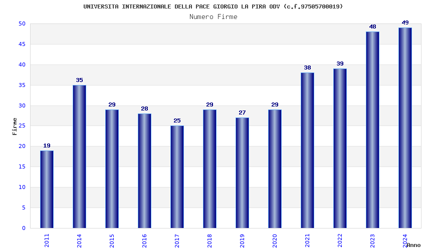 | Anno | Firme | Importi | Media | Naz. | Reg. | Prov. | Comu. |