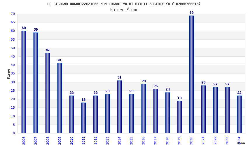 | Anno | Firme | Importi | Media | Naz. | Reg. | Prov. | Comu. |