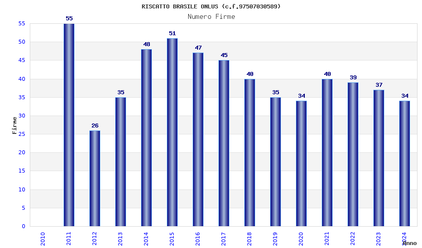 | Anno | Firme | Importi | Media | Naz. | Reg. | Prov. | Comu. |