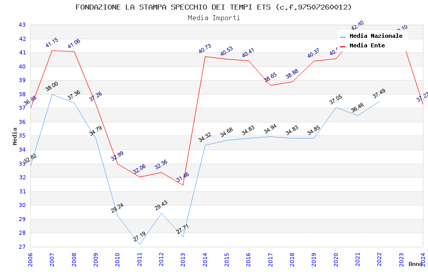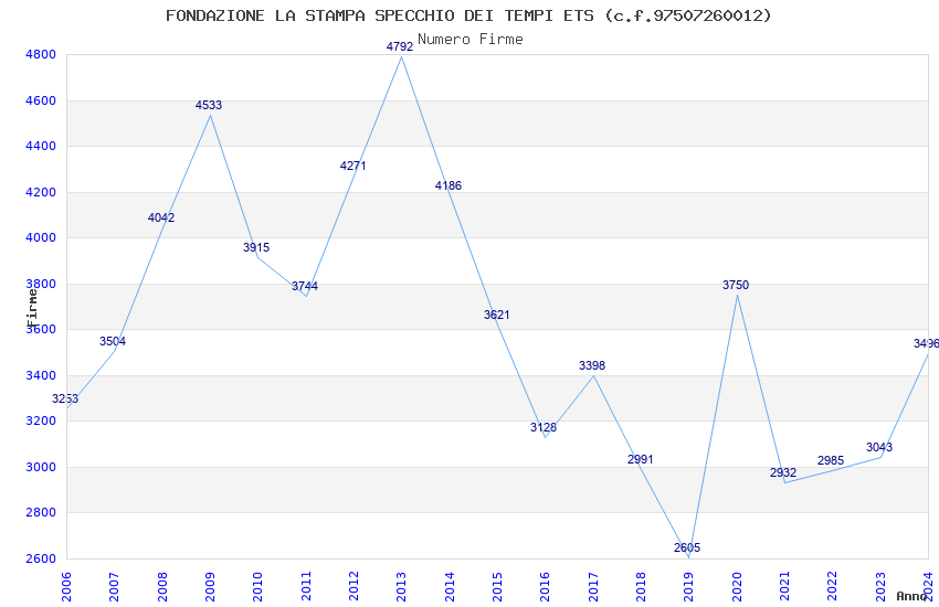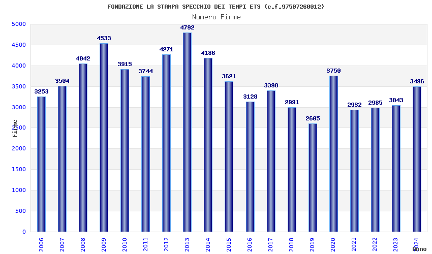 | Anno | Firme | Importi | Media | Naz. | Reg. | Prov. | Comu. |