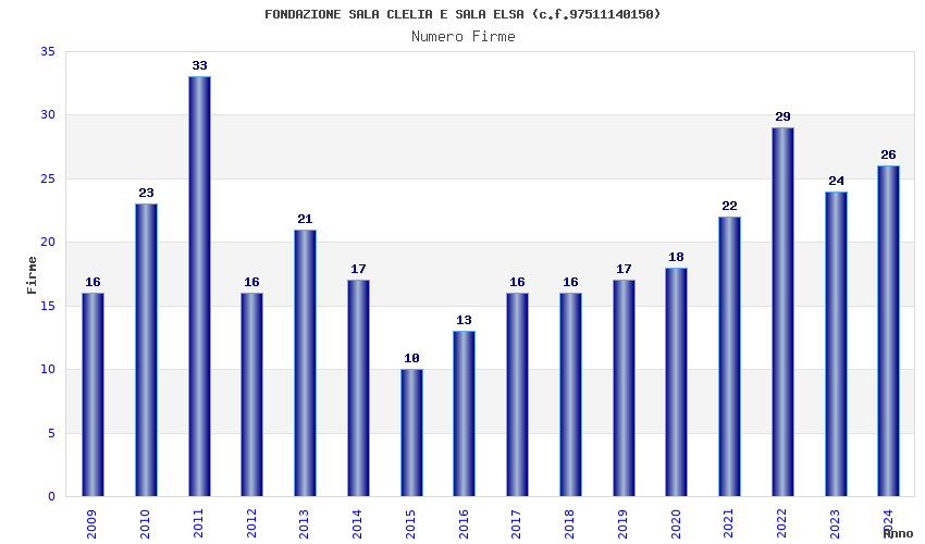 | Anno | Firme | Importi | Media | Naz. | Reg. | Prov. | Comu. |