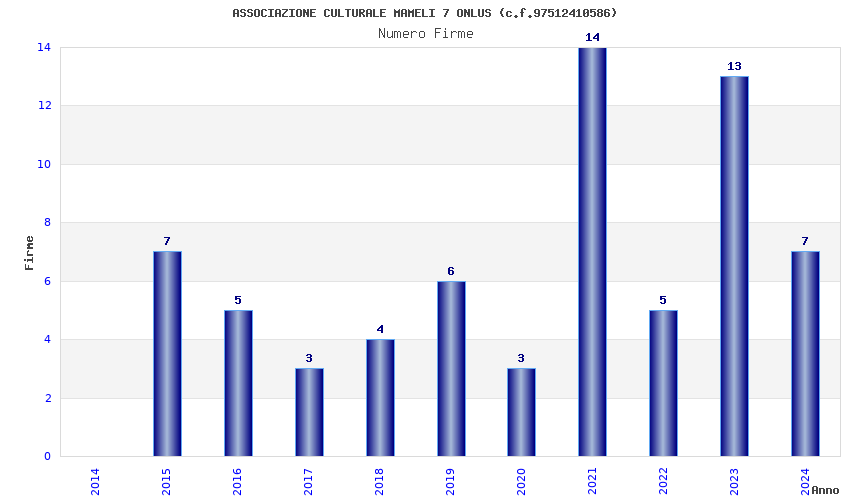 | Anno | Firme | Importi | Media | Naz. | Reg. | Prov. | Comu. |