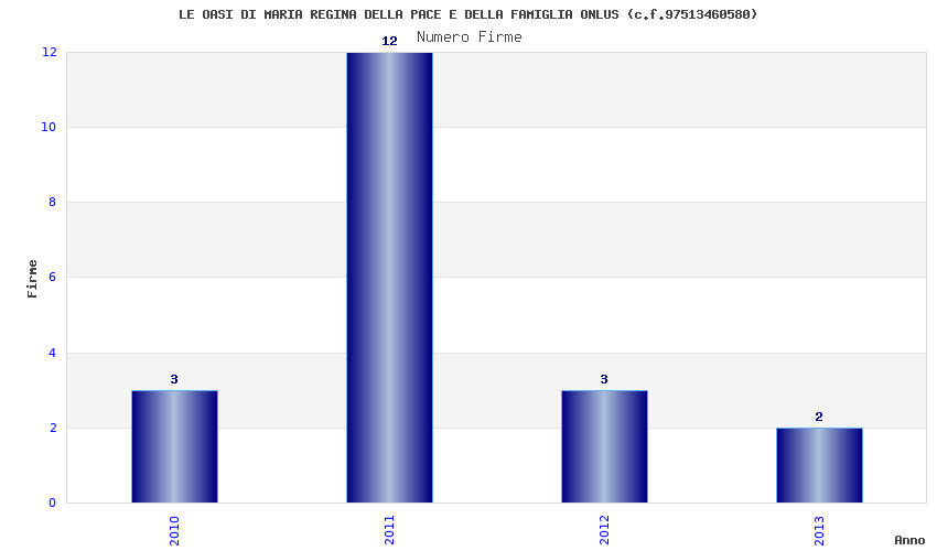 | Anno | Firme | Importi | Media | Naz. | Reg. | Prov. | Comu. |