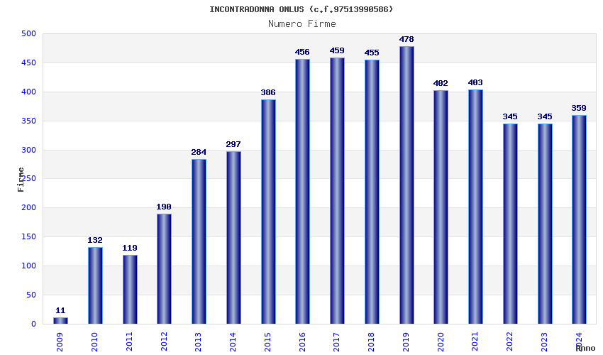 | Anno | Firme | Importi | Media | Naz. | Reg. | Prov. | Comu. |
