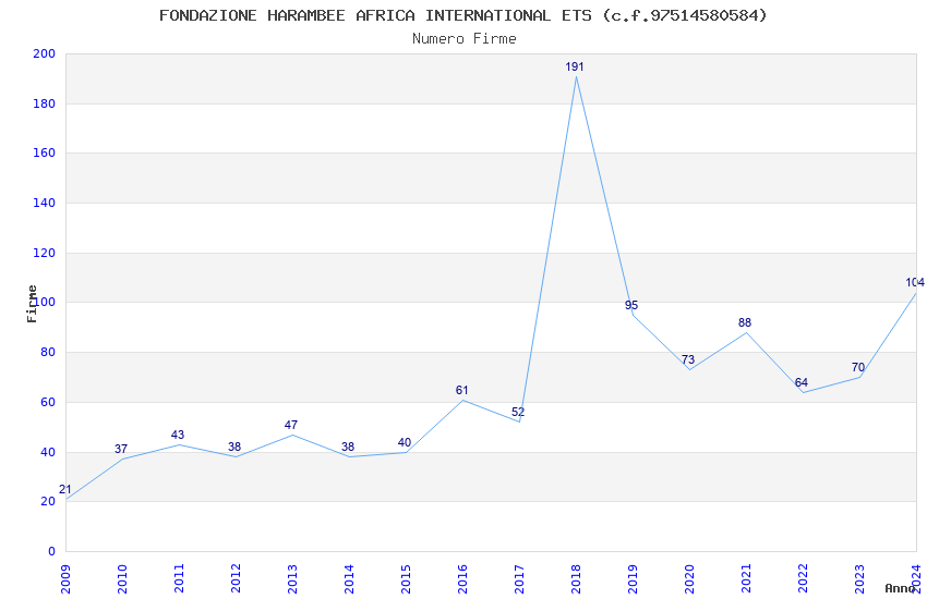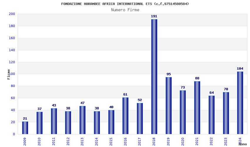 | Anno | Firme | Importi | Media | Naz. | Reg. | Prov. | Comu. |