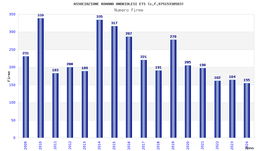 | Anno | Firme | Importi | Media | Naz. | Reg. | Prov. | Comu. |